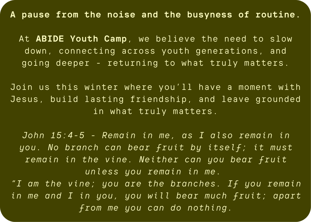Your generosity helps cover essential costs and provide subsidies for those carrying financial burden. When you give, you’re not just supporting an event. You’re investing in young leaders, moments of transformation, and seeds of faith that will grow far beyond this camp.